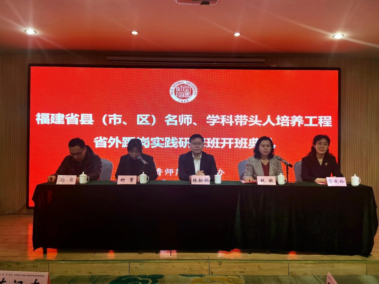 开班仪式上,林松柏向参加福建省县(市、区)基础教育名师培养工程实践研修班的各位学员表示热烈的欢迎,并结合当前教育形势作了“面向未来的教育”主题讲座。林松柏重温教育的“三个面向”,从理论角度深入阐述了教育的本质,结合时代的基本特征提出了面向未来的教育教学改革路径;从实践角度提出了基于OBE理念的课程设计,引发了关于教师发展的新思考。他表示基础教育“名师培养工程”为鲁闽教育交流提供了一次难得的机会,希望大家能够在此次研修班中有所获益、有所提升,从而进一步发挥名师带动一方的辐射和示范作用。