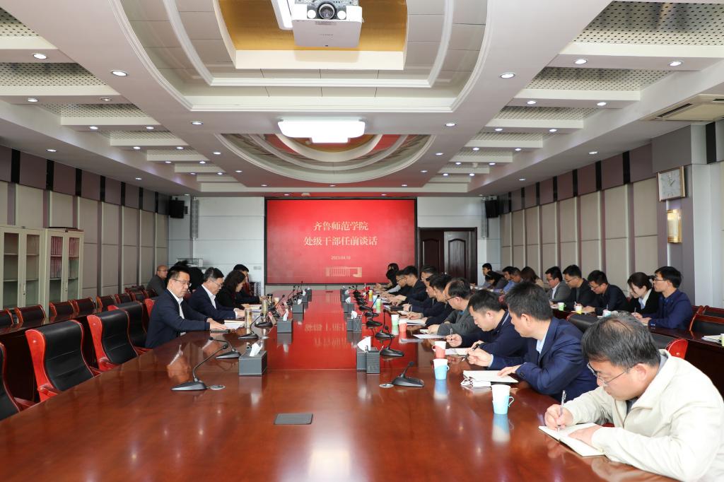 4月10日下午,学校在图书馆四楼会议室召开处级干部任前谈话会议。党委书记林松柏,党委副书记赵敏,党委委员、纪委书记、省监委驻学校监察专员高明辉,党委委员、组织部部长杨磊出席会议,会议由赵敏主持。