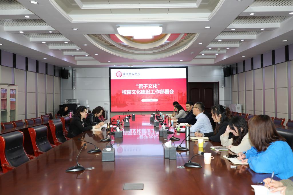 为认真贯彻落实学校第三次党代会工作任务,推进校园文化建设行动有力实施,4月14日上午,“君子文化”校园文化建设工作部署会在图书馆四楼会议室召开。学校党委副书记赵敏出席会议并讲话。会议由党委委员、党委宣传部部长孙磊主持。