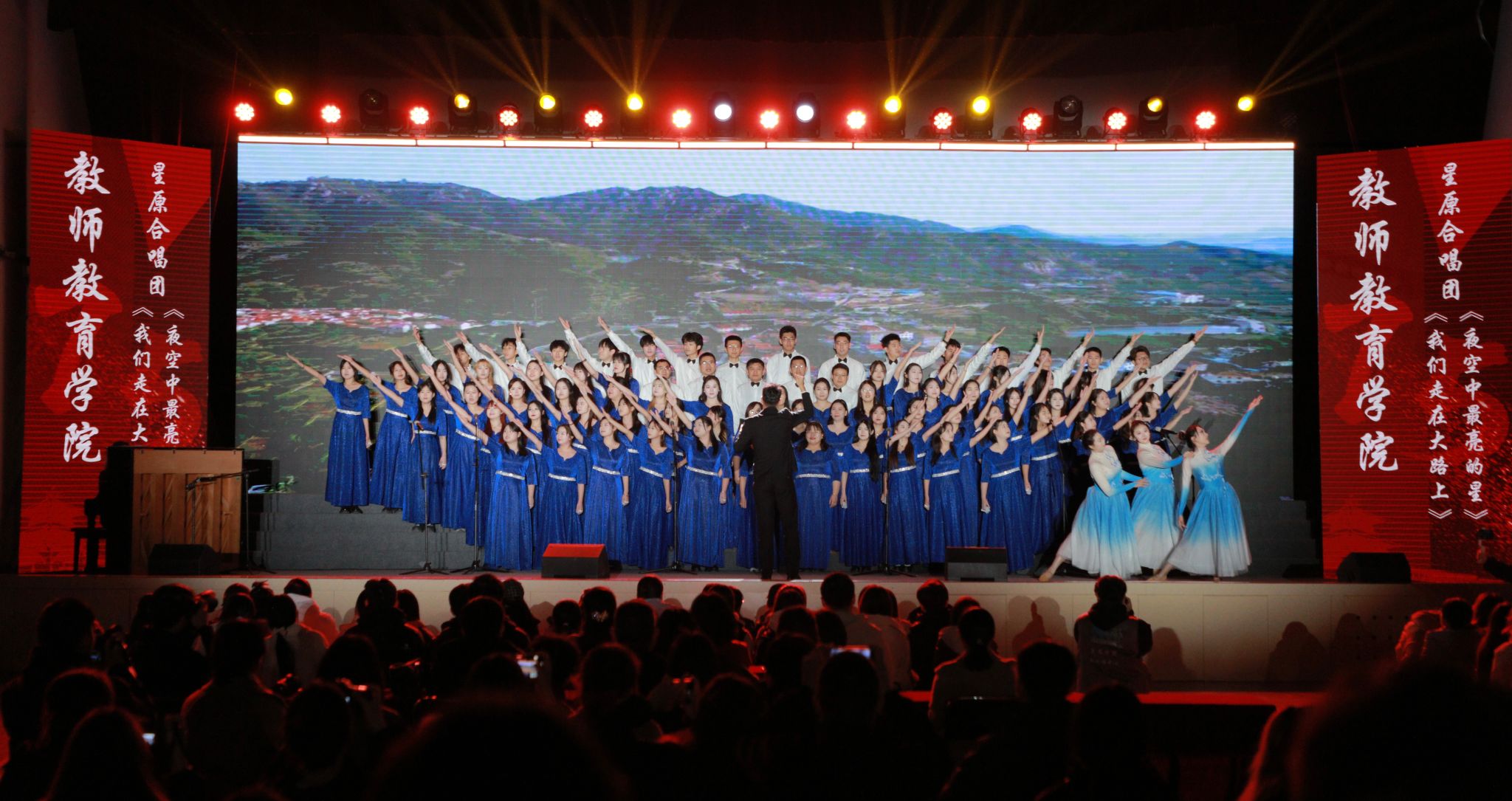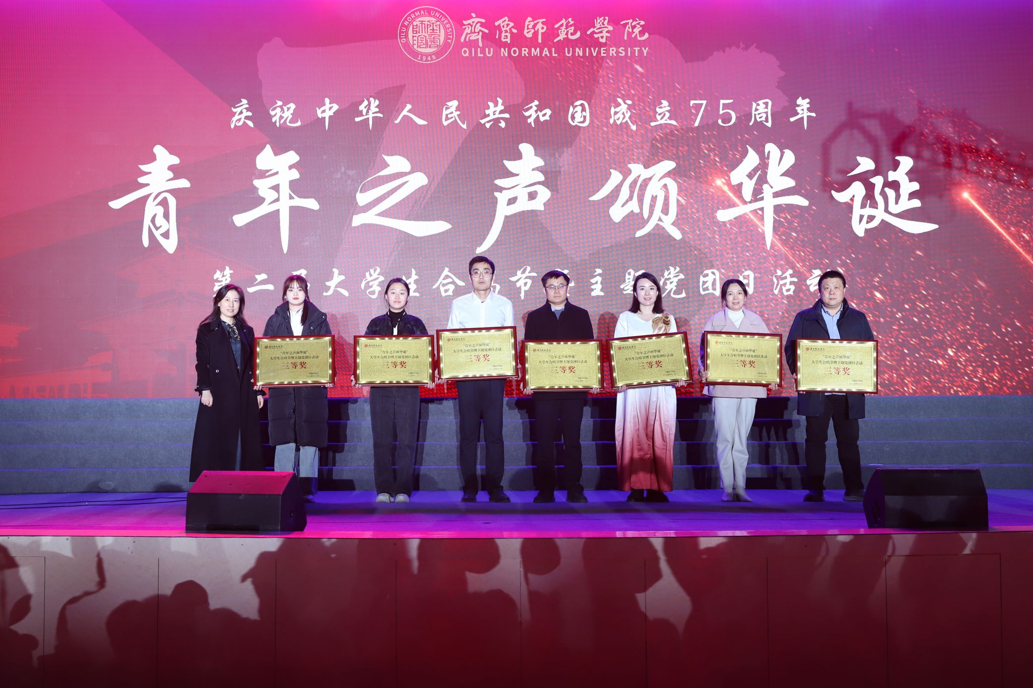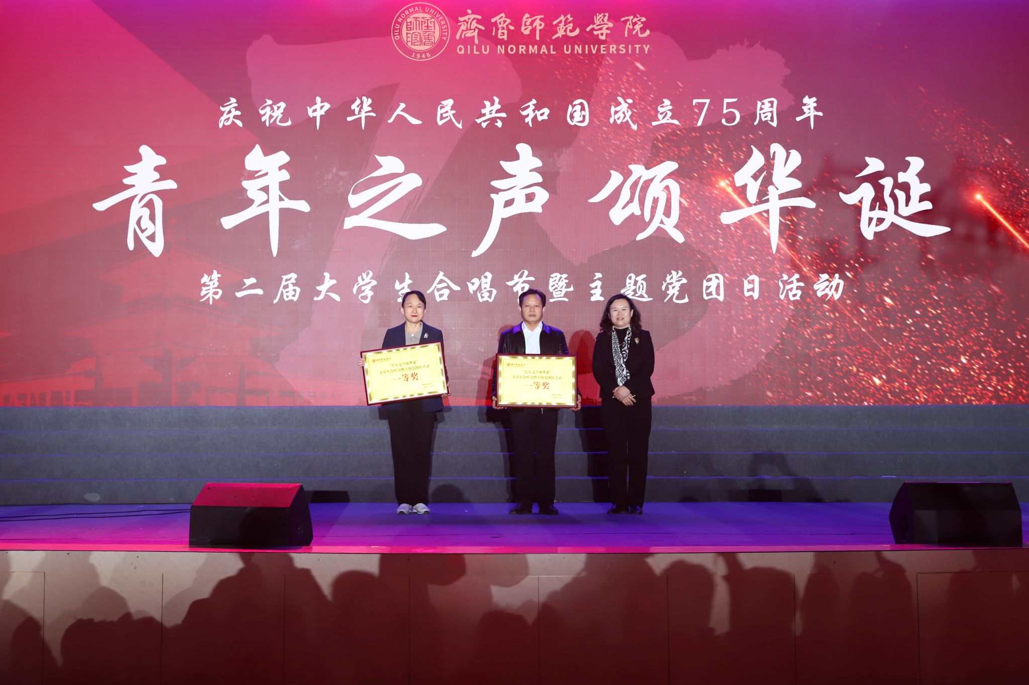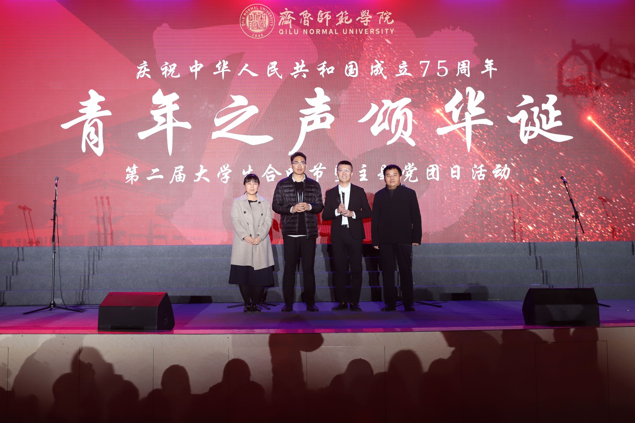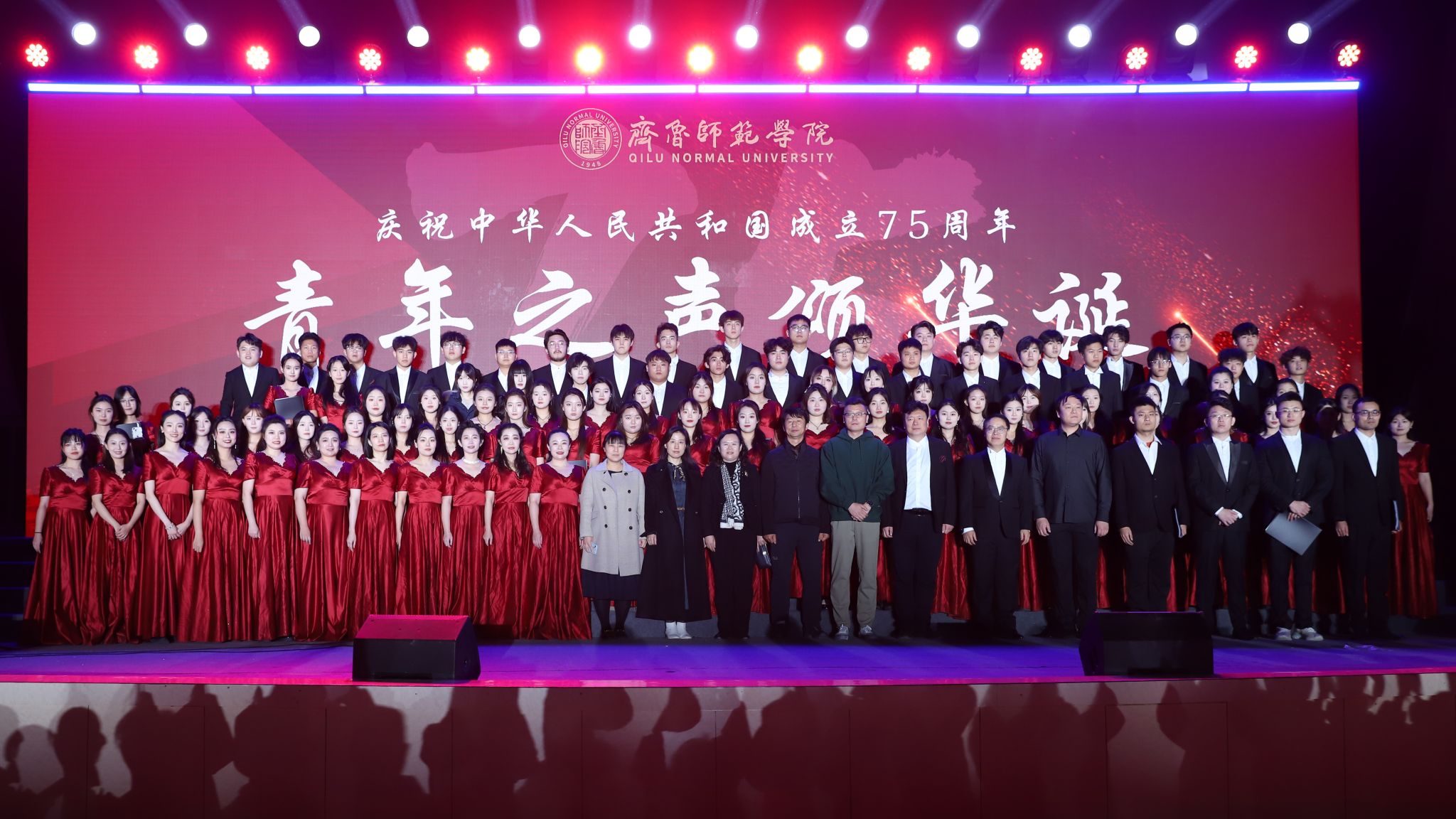 为弘扬爱国主义精神,厚植师院青年爱党爱国的伟大情怀,向中华人民共和国成立75周年献礼,11月28日晚,由党委组织部、党委宣传部、团委联合主办的庆祝中华人民共和国成立75周年“青年之声颂华诞”第二届大学生合唱节暨主题党团日活动在章丘校区体育馆举行。