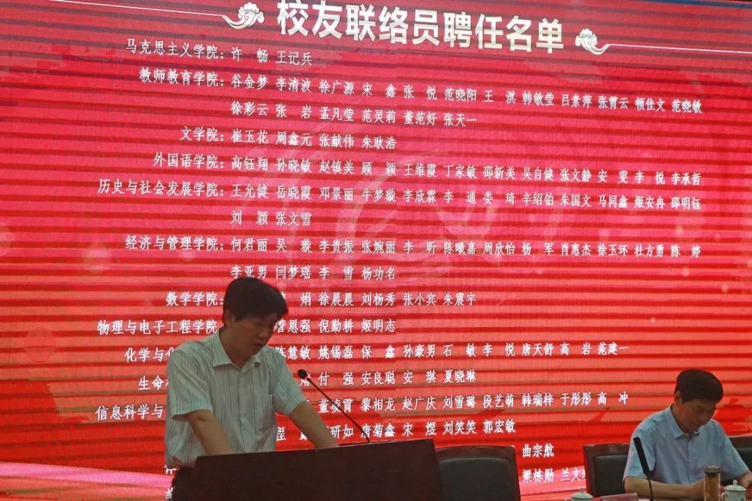 校友联络员代表2015级马克思主义学院许畅发言,回顾学校生活,感恩母校,感恩同窗。她号召全体2019届校友联络员牢记母校嘱托,用心做、用情做,勇于担当,不断加强学校与社会,校友与学校,校友与校友间的联系,立鸿鹄志,做奋斗者,架设好母校与校友沟通的桥梁。校友志愿者协会代表季文婧发言,表达了对母校的感恩之情,并表示校友是学校的宝贵财富,增强校友感恩意识、荣誉意识,责任感意识,不负重任。