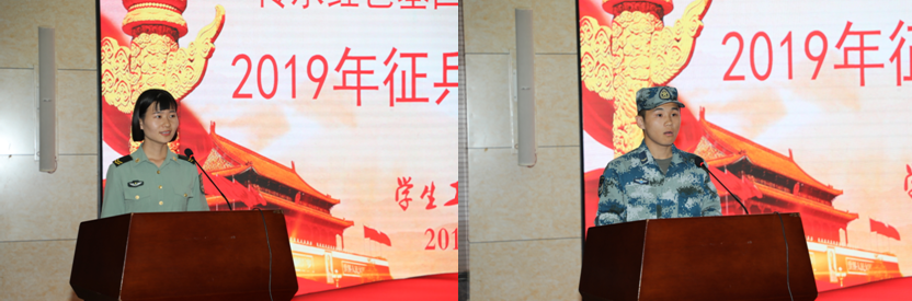 永利官网音乐学院2016级音乐学专业学生徐莹、教师教育学院2017级学前教育专业学生崔秀芳、经济与管理学院2015级会计专业学生王法海、外国语学院2016级师范英语专业学生穆红丽四位退役复学的优秀学生代表分别发言。他们满含深情地回顾了在军营中的激情岁月,分享了军旅生活对个人政治素质、意志品质、综合能力等方面的培养感悟,字字情真意切,句句都体现了永利官网应征入伍大学生们立志报效祖国、服务人民、回报社会的家国情怀。