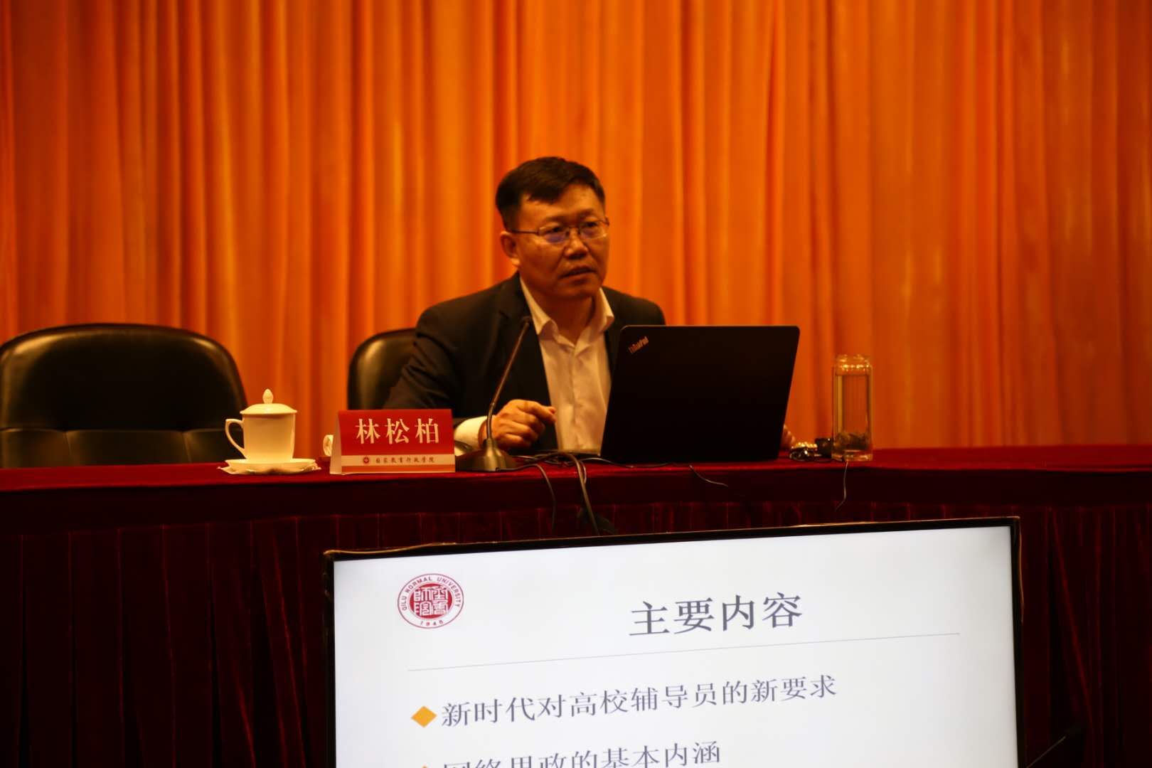 为深入学习习近平新时代中国特色社会主义思想,贯彻落实全国教育大会和全国高校思想政治工作会议精神,进一步推动高校辅导员队伍专业化职业化建设,5月6日,由教育部举办的第一期高校辅导员素质能力提升培训班在北京国家教育行政学院举行。来自全国各高校学工部(处)相关负责人、院系党委(党总支)副书记、辅导员等三百余人参加培训。5月7日上午,永利官网党委副书记、校长林松柏应邀为培训班作专题报告。