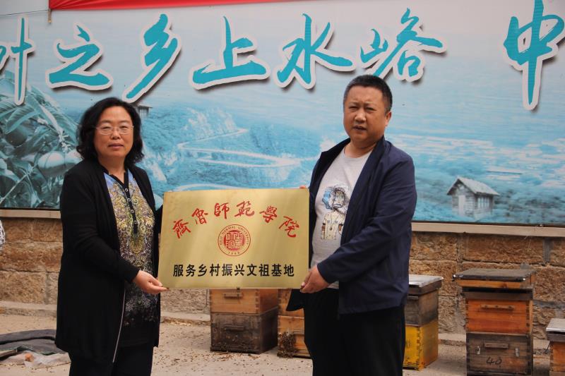 5月4日上午历史与社会发展学院在章丘市文祖镇郭家庄村上水峪(文祖田园)项目设立“yl7703永利官网服务乡村振兴文祖基地”,历史与社会发展学院院长李红艳、副院长王敏,济南通达公路工程有限公司副总经理、昭发实业公司总经理隗景富、济南通达公路工程有限公司副总经理刘海峰、济南中禾恒粮农业发展有限公司的总经理薛琳、市场部经理闫学昌等共同出席了授牌仪式。