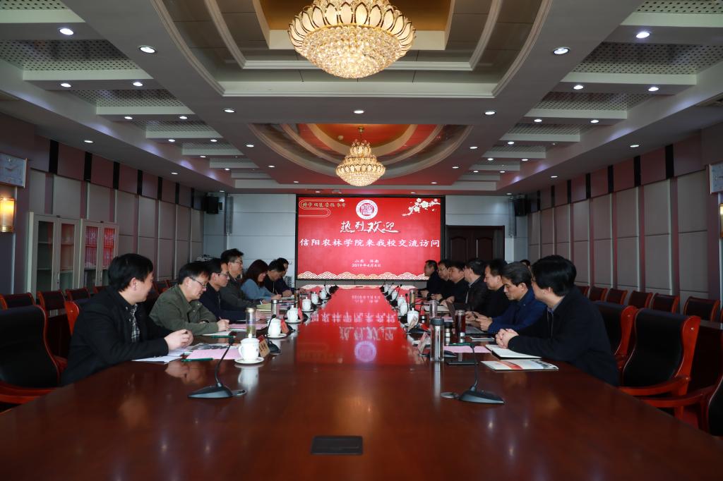 4月4日,信阳农林学院副校长赵一鹏一行来永利官网交流访问。学校党委副书记、校长林松柏会见了客人,校长办公室、学生工作部(处)、人事处、教务处、教学质量监控与评估处、实验管理中心负责人参加了座谈。