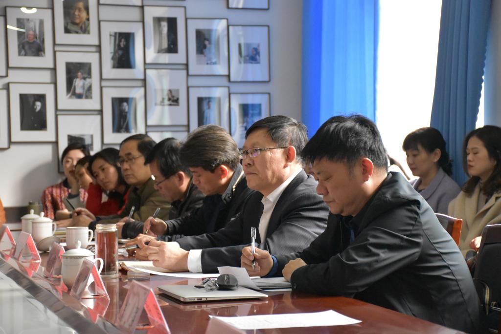 调研中,美术学院副院长杨三军汇报了美术学院的教学工作基本情况和师范类专业认证的进展程度;副院长曹暇汇报了美术学院的目前科研情况和我院在科研方面存在的问题;党总支书记刘增军汇报了美术学院一年来在学风建设和学生就业等方面的相关情况;朱茂刚、王宇宇两位老师分别就获得国家艺术基金立项的经验进行交流;巩艺、刘爽、王官旭等老师分别对学生毕业创作、毕业论文、实验室建设等方面提出意见和建议。