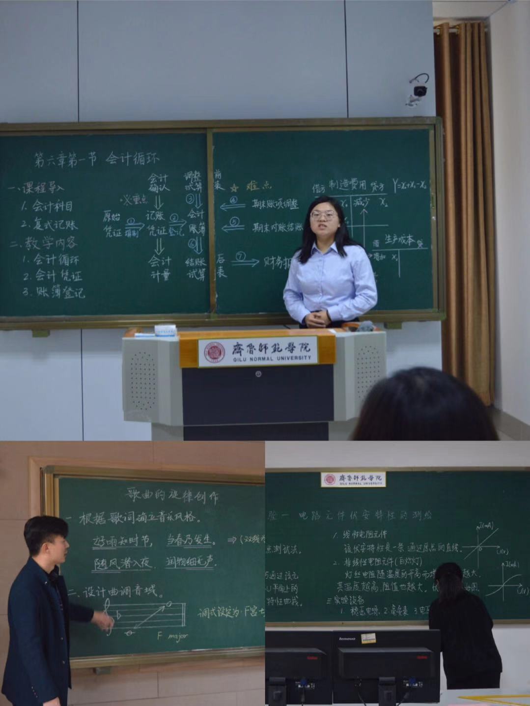 参赛教师在规定的20分钟内,将设计好的板书在黑板上现场展示,并对设计的意图做了简要说明,由评委进行综合打分。王始钧教授应邀对本次比赛做了精彩点评。