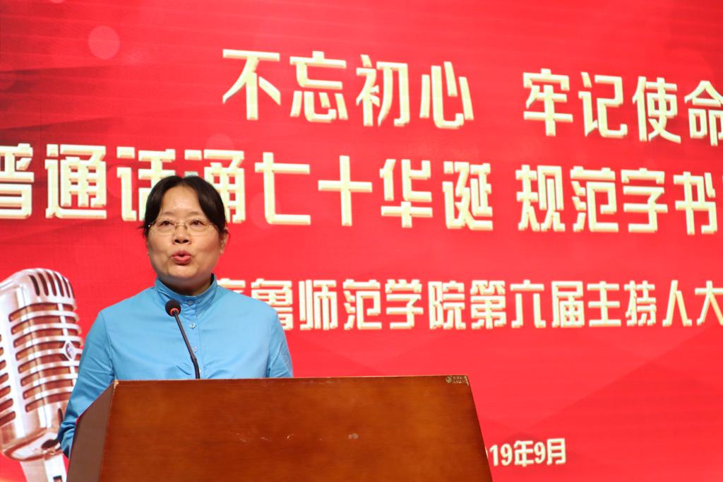 林松柏校长为主持人大赛致开幕词,他指出,普通话是中华民族大家庭的通用语言,是维系民族团结的纽带,促进社会发展的桥梁。希望大家能够通过此次活动的开展,不断增强自觉规范使用国家通用语言文字的意识,积极弘扬中华民族优秀文化,一起“用普通话讲述中国梦,用规范字书写中国梦,共同构筑语言文字中国梦”,掀起“普通话颂七十华诞,规范字书爱国情怀”的新热潮,共同推动永利官网精神文明建设纵深发展。山东省语言文字工作委员会办公室主任杜永娟为大赛致辞,她对永利官网的语言文字工作给予充分的肯定并向永利官网领导及师生对于语委办工作的支持与配合表示感谢并对永利官网今后的语言文字工作提出新的希望。