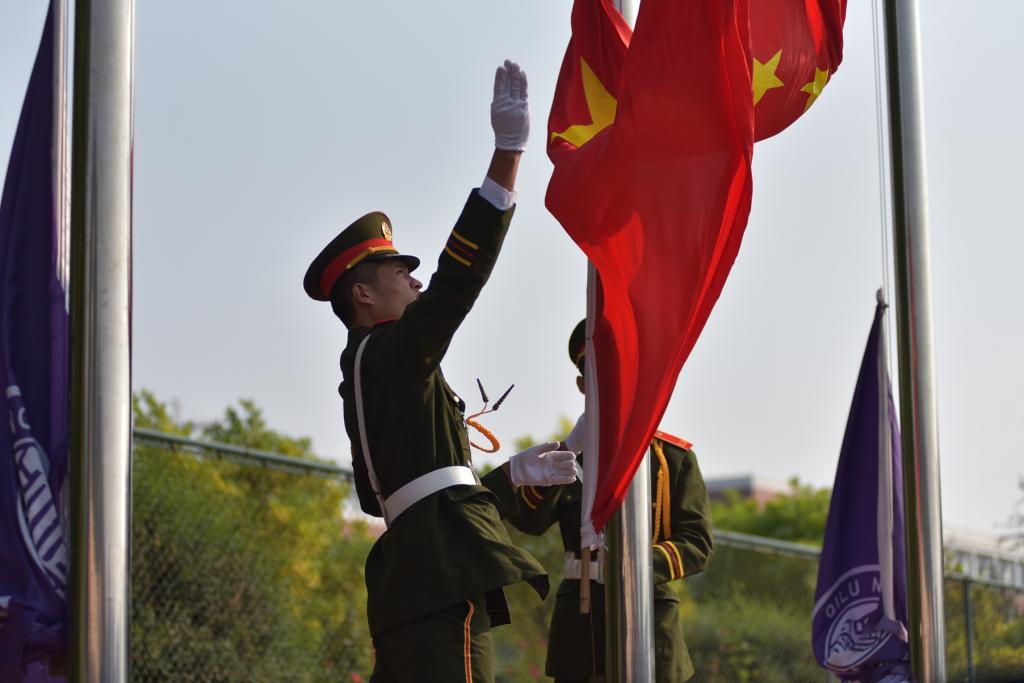 9月29日上午,永利官网2019级新生军训成果汇报暨总结表彰大会在章丘校区田径运动场隆重举行。校党委书记王玉华,党委副书记、校长林松柏,中国人民解放军某部队副教导员张坤,副校长刘德增、张福建、王海,纪委书记李启波出席大会。承训部队官兵,学校相关职能部门负责人,各学院院长,党总支书记、副书记,团总支书记、副书记、辅导员及2019级全体新生参加大会。王玉华书记向承训部队赠送锦旗,林松柏校长做军训总结讲话,大会由张福建副校长主持。