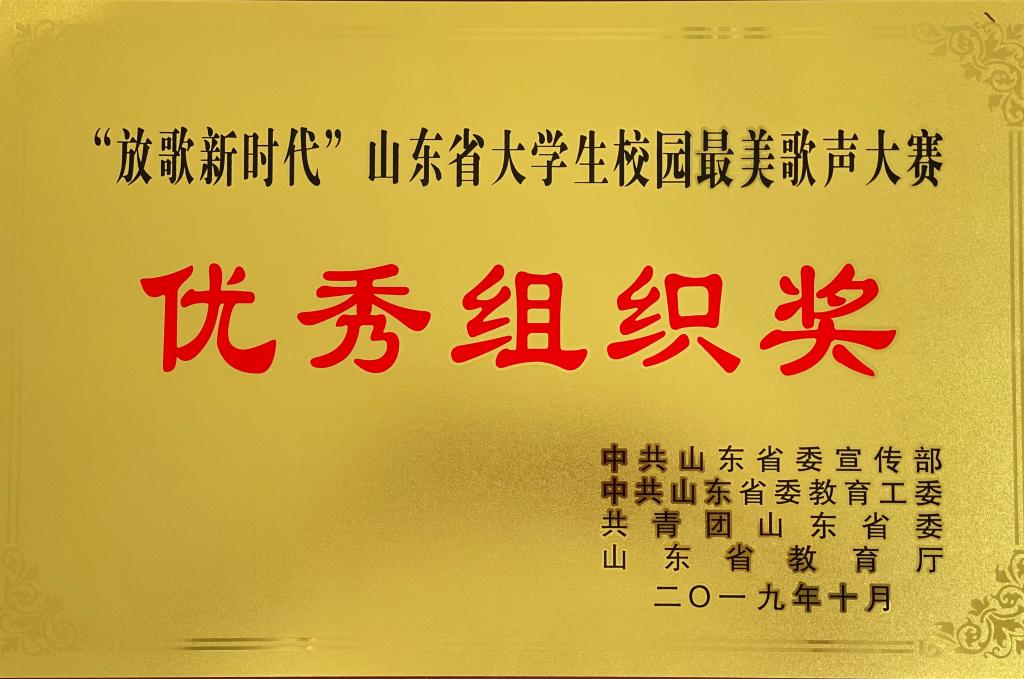 永利官网荣获“放歌新时代”山东省大学生校园最美歌声大赛“优秀组织奖”