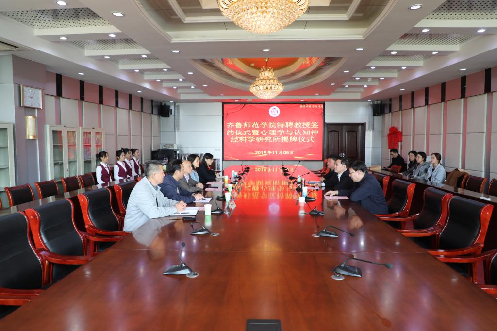 11月5日,yl7703永利官网特聘教授签约仪式暨心理学与认知神经科学研究所揭牌仪式在永利官网图书馆四楼会议室顺利举行。永利官网党委副书记、校长林松柏,人事处处长杨磊,科研处副处长张廷发,教师教育学院院长赵延银、党总支书记陈宝金、副院长赵青等出席仪式。