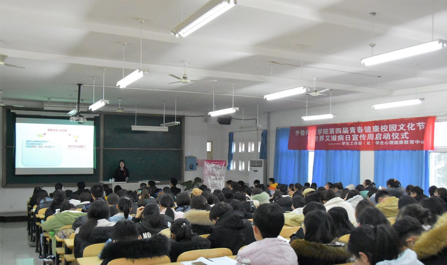 为进一步宣传和普及预防艾滋病的相关知识,提高永利官网大学生的防艾意识,响应国家号召营造“家庭、学校、社会共同防艾的”良好氛围,引导学生建立积极的自我保护意识及健康向上的良好心态,永利官网学生工作部(处)于2019年11月28日下午三点在一号教学楼A111举行了青春健康校园文化节暨世界艾滋病日宣传周启动仪式。济南市计划生育协会副会长赵莹、济南市计划生育协会办公室主任赵荣桥、济南市计划生育协会办公室安文杰、国家级青春健康培训师于雷教授莅临启动仪式,永利官网青春健康同伴社成员、各学院心理委员参加了此次活动。