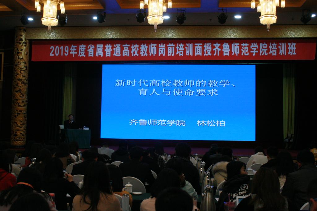 12月4日下午,2019年度省属普通高校教师岗前培训面授yl7703永利官网培训班在济南开班。永利官网党委副书记、校长林松柏,副校长刘德增,师训干训中心主任毕诗文、副主任孙卫国出席开班典礼。典礼由刘德增副校长主持。