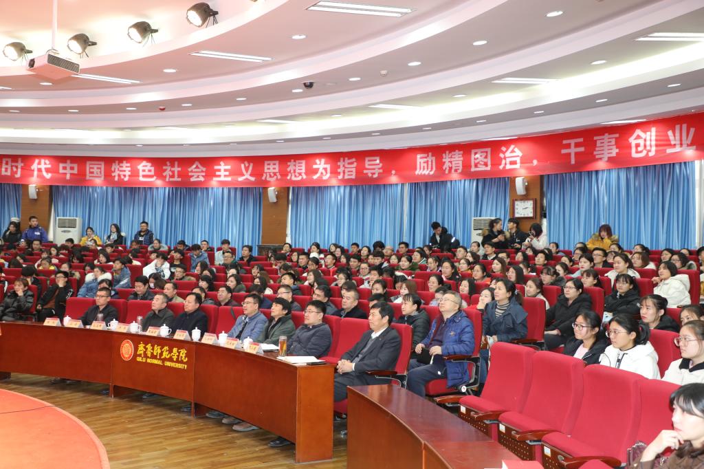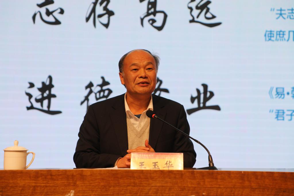 首先,王玉华书记解读了“志业大讲堂”名称的由来,并从个人研究方面阐述了对“志业”精神以及“志存高远、进德修业”主题的深刻见解,在报告中他引经据典、旁征博引,从新中国总理周恩来,到两弹一星科学家郭永怀,再到“时代楷模”黄文秀,通过一个个鲜活的榜样人物,一个个精彩的事例,引导学生明确“立鸿鹄志、做奋斗者”的宏伟目标,为学生“立德修身、志业有为”指明了方向。他勉励永利官网青年学生,一要立根铸魂、家国天下,做初心使命的践行者;二要志存高远、脚踏实地,做知行合一的实践者;三要修身立德、担当奉献,做社会风尚的引领者;四要潜心问学、修业不息,做无愧于时代的奋斗者。