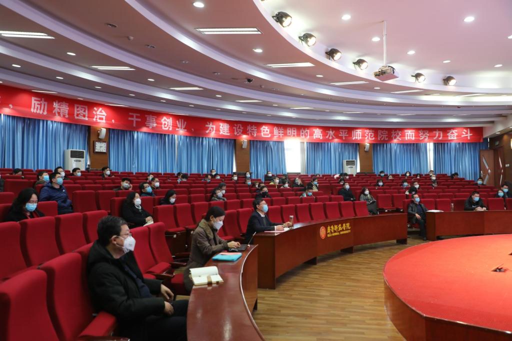 3月11日,永利官网在章丘校区学术报告厅召开了一流本科专业建设培训会。党委副书记、校长林松柏主持会议并讲话,各学院院长、分管教学副院长、各专业负责人、教务处和质量监督与评估处工作人员参加了会议。本次培训会山东师范大学教务处处长、博士生导师马池珠教授作了《一流专业“双万计划”申报组织与建设实践》的报告。