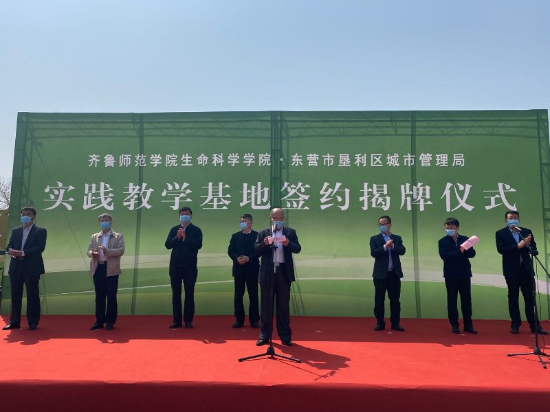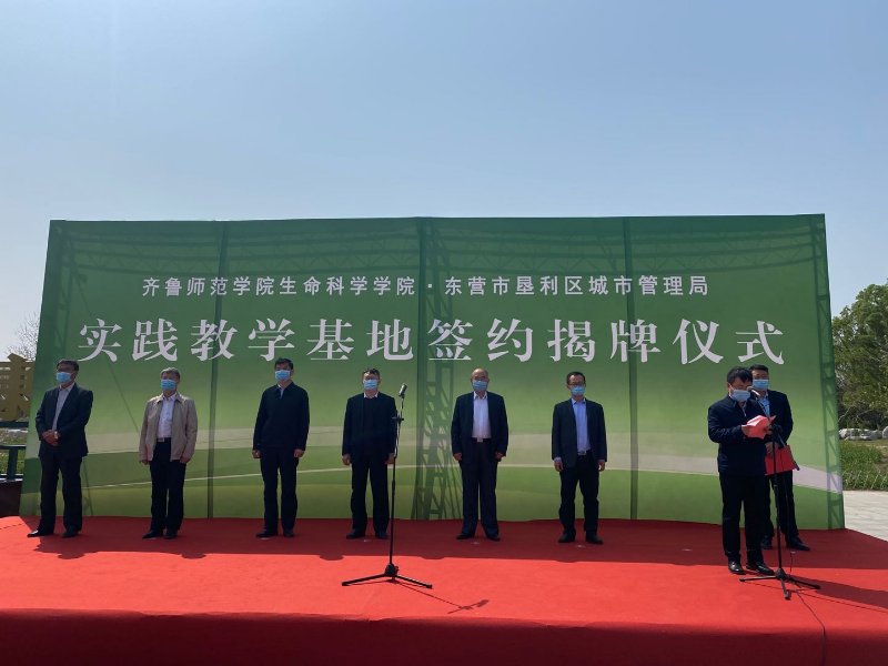 最后,李师鹏与宋金生分别代表生命科学学院和垦利区城市管理局签订了合作协议书,林松柏与刘斯杰共同为“实践教学基地”揭牌。