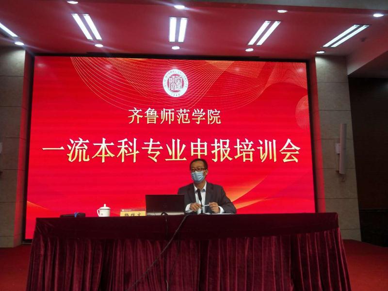 4月16日下午,学校在章丘校区学术报告厅召开2020年度一流本科专业申报培训会,重点部署一流本科专业申报和建设工作。会议由教务处负责人孙洪兆主持,各学院院长、分管教学副院长、各专业负责人、教务处和教学质量监控与评估处负责人及相关工作人员参加了会议,山东师范大学生命科学学院院长、博士生导师杨桂文教授做了报告。