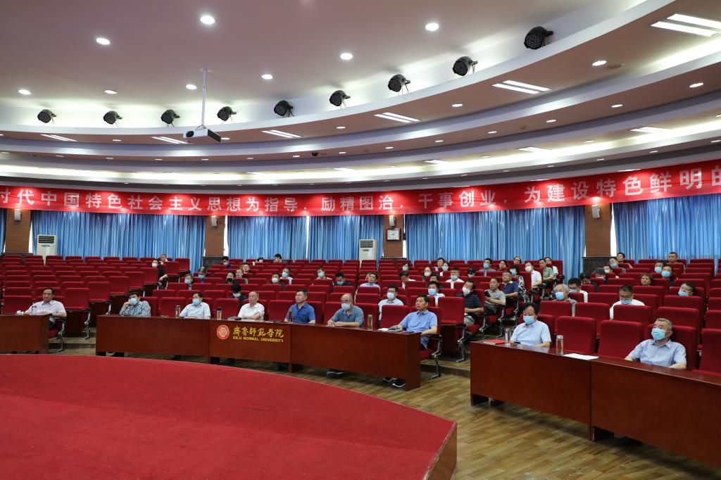 根据省委通知要求,6月8日上午,学校在章丘校区图书馆学术报告厅和历下校区北办公楼四楼会议室,分别组织中层以上干部集中收看全省工业互联网专题报告会。党委书记王玉华,党委副书记、校长林松柏,党委副书记刘宝君,副校长刘德增,党委委员、副校长张福建,党委委员、副校长王海,党委委员、纪委书记、监察专员李启波在章丘校区观看现场直播。