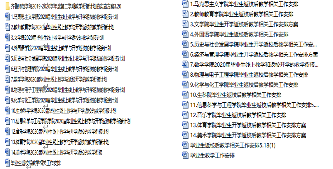 为确保 2020 年永利官网春季学期返校开学后各项工作的安全、平稳、有序,切实做好永利官网线上教学与返校开学后教学的有序衔接,保证学生“疫情期间”与“正式开学后”两段学习过程的“无缝衔接”,结合《山东省高等学校 2020 年春季学期开学条件核验细则》第45条,积极准备学生复学相关工作。科学制定了《yl7703永利官网2019-2020学年度第二学期教学衔接计划实施方案》,组织各学院完成了《2020届毕业生线上教学与开学返校的教学衔接计划》《毕业生返校后教学相关工作》《2019-2020学年度第二学期在校生教学衔接计划实施方案》。