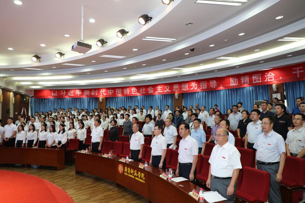 在第36个教师节来临之际,9月9日下午,学校在章丘校区图书馆学术报告厅隆重举行2020年教师节表彰大会暨教师宣誓仪式。党委书记王玉华,党委副书记、校长林松柏,党委副书记刘宝君,副校长刘德增,党委委员、副校长张福建,党委委员、纪委书记、监察专员李启波出席。各部门单位党政负责人、教师代表、新入职教师和学生代表参加。大会由刘宝君副书记主持。