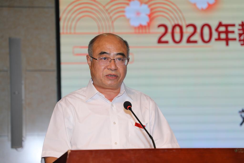 李启波书记宣读了关于表彰30年教龄教职工的决定;张福建副校长为30年教龄教职工颁奖。刘德增副校长宣读了2020年yl7703永利官网教书育人楷模和最美教师表彰决定;与会人员集体观看了党委教师工作部精心制作的教书育人楷模和最美教师事迹展示;王玉华书记和林松柏校长分别为教书育人楷模和最美教师颁奖。随后,教师代表、化学与化工学院院长曹晓荣教授和新进教师代表、美术学院王华军博士先后发言。最后,在教书育人楷模、教师教育学院刘文华教授带领下,大家举起右手,对着鲜艳的五星红旗和教师誓词,许下庄严承诺。