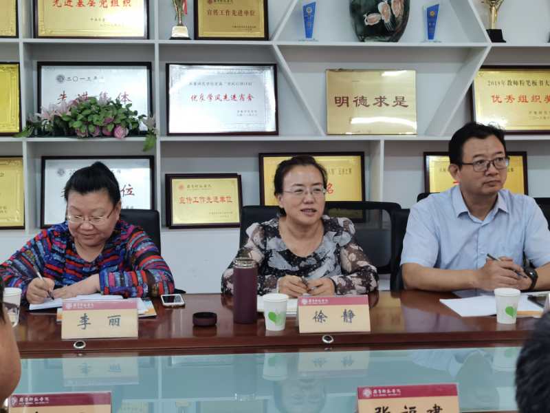 教学质量监控与评估处处长郑强总结了教育部师范专业认证的工作要求、工作流程,对迎接专家组进校前的准备及入校后的工作作出分析;教务处负责人孙洪兆就培养目标设计、毕业要求、课程体系等方面进行进一步说明;马克思主义学院院长刘振光、马克思主义学院党总支副书记赵立峰就思想政治教育师范专业认证相关工作及经验作了详细的汇报总结。