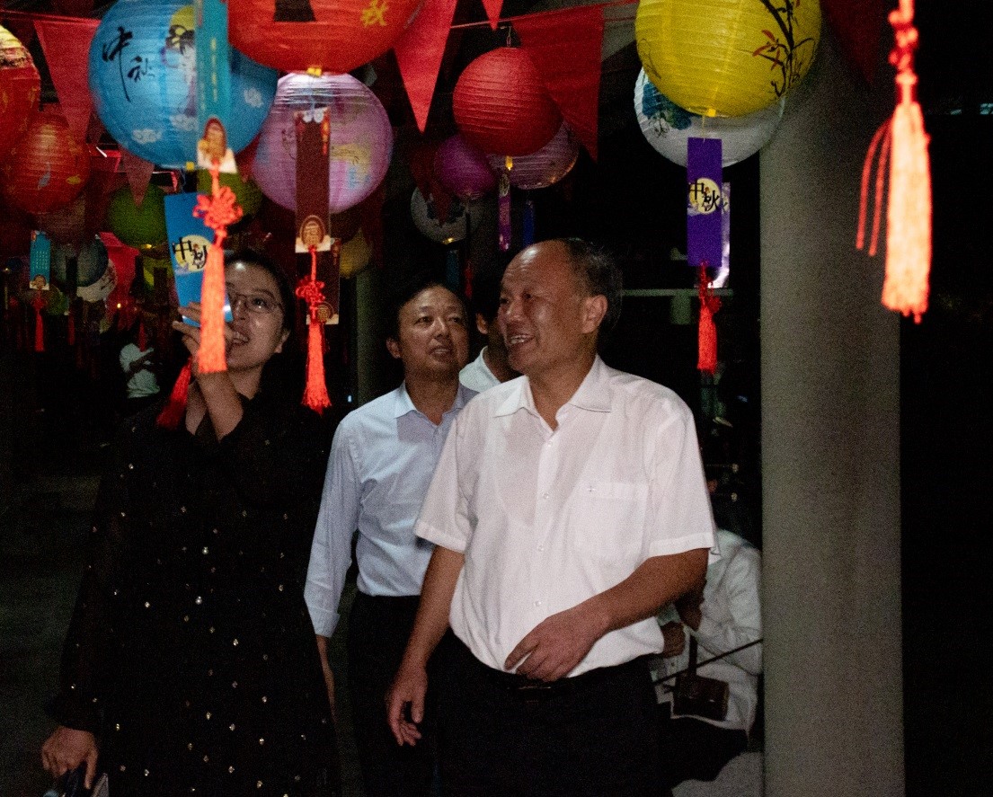 中秋月满园,国庆喜相逢。为深入贯彻落实立德树人根本任务,强化学校“文化育人”办学特色,深入挖掘中秋节、国庆节凝结的优秀传统文化和爱国主义内涵,培养学生社会主义核心价值观,教育引导学生弘扬传承中华优秀传统文化精神,永利官网于9月30日组织开展“过好中国节日 讲好中国故事——月满中秋迎国庆 赏灯猜谜逛长廊”主题活动。学校党委书记王玉华出席活动,并与上千名学生欢度中秋佳节,党委办公室、校长办公室主任牟伟,学生工作部(处)部长孙磊陪同参与活动。