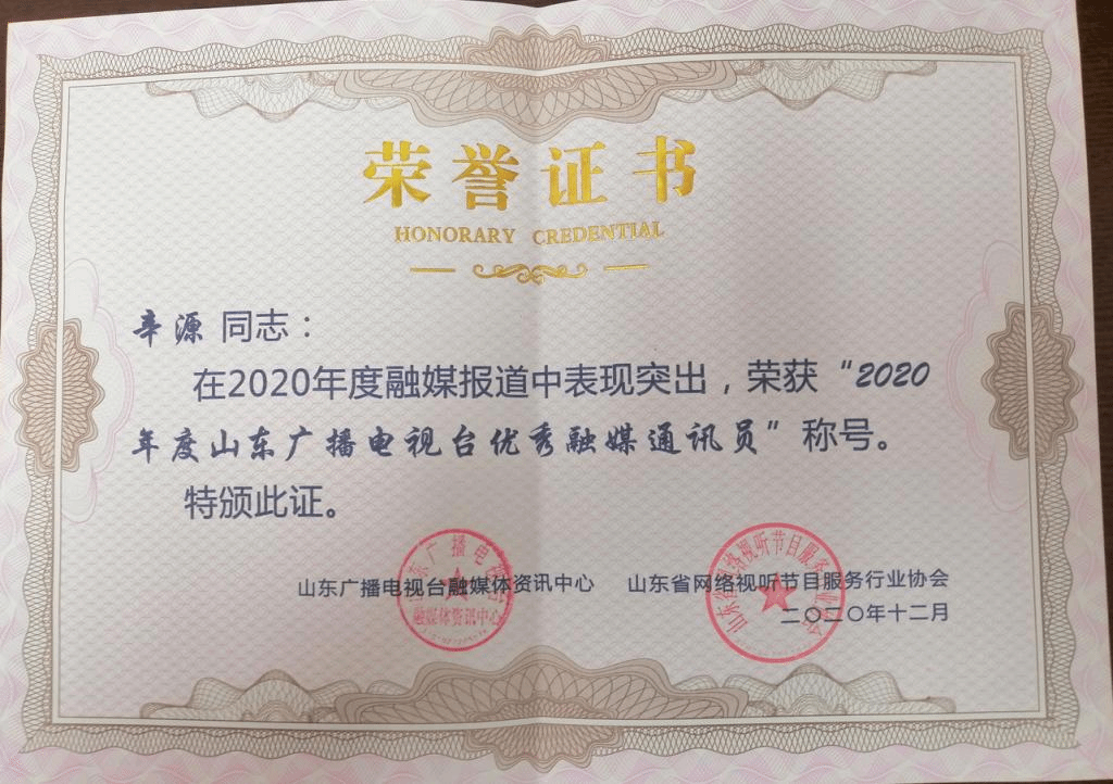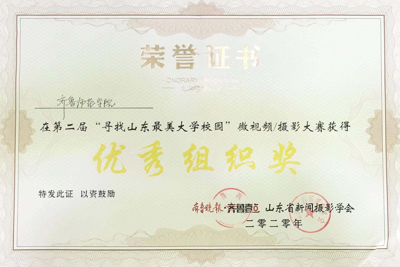 此外,永利官网还荣获齐鲁晚报﹒齐鲁壹点颁发的“2020年度融媒传播最具创新力高校”和第二届“寻找山东最美大学校园”微视频/摄影大赛优秀组织奖。