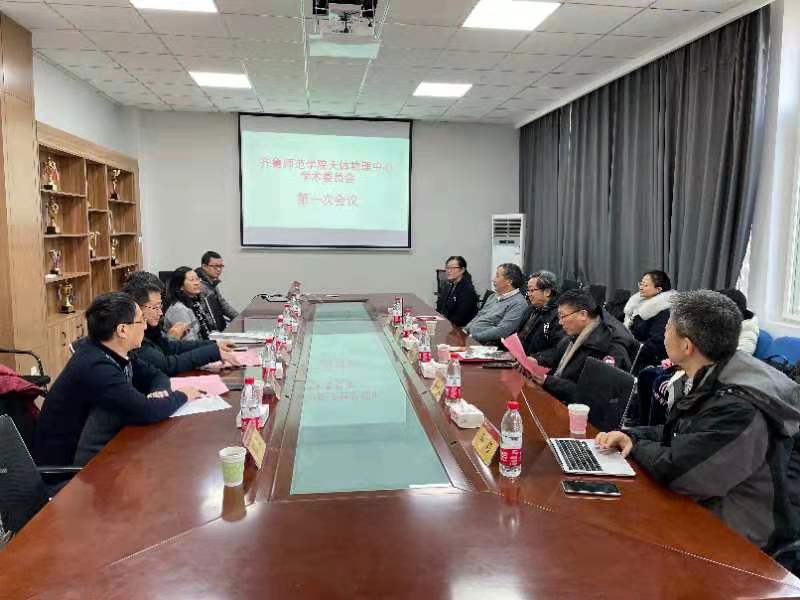 成立仪式后,yl7703永利官网天体物理中心学术委员会在物理与电子工程学院会议室召开第一次会议,物理与电子工程学院院长张洁汇报中心现状及发展规划,学术委员会委员建议发言,集体讨论天体物理中心工作章程。