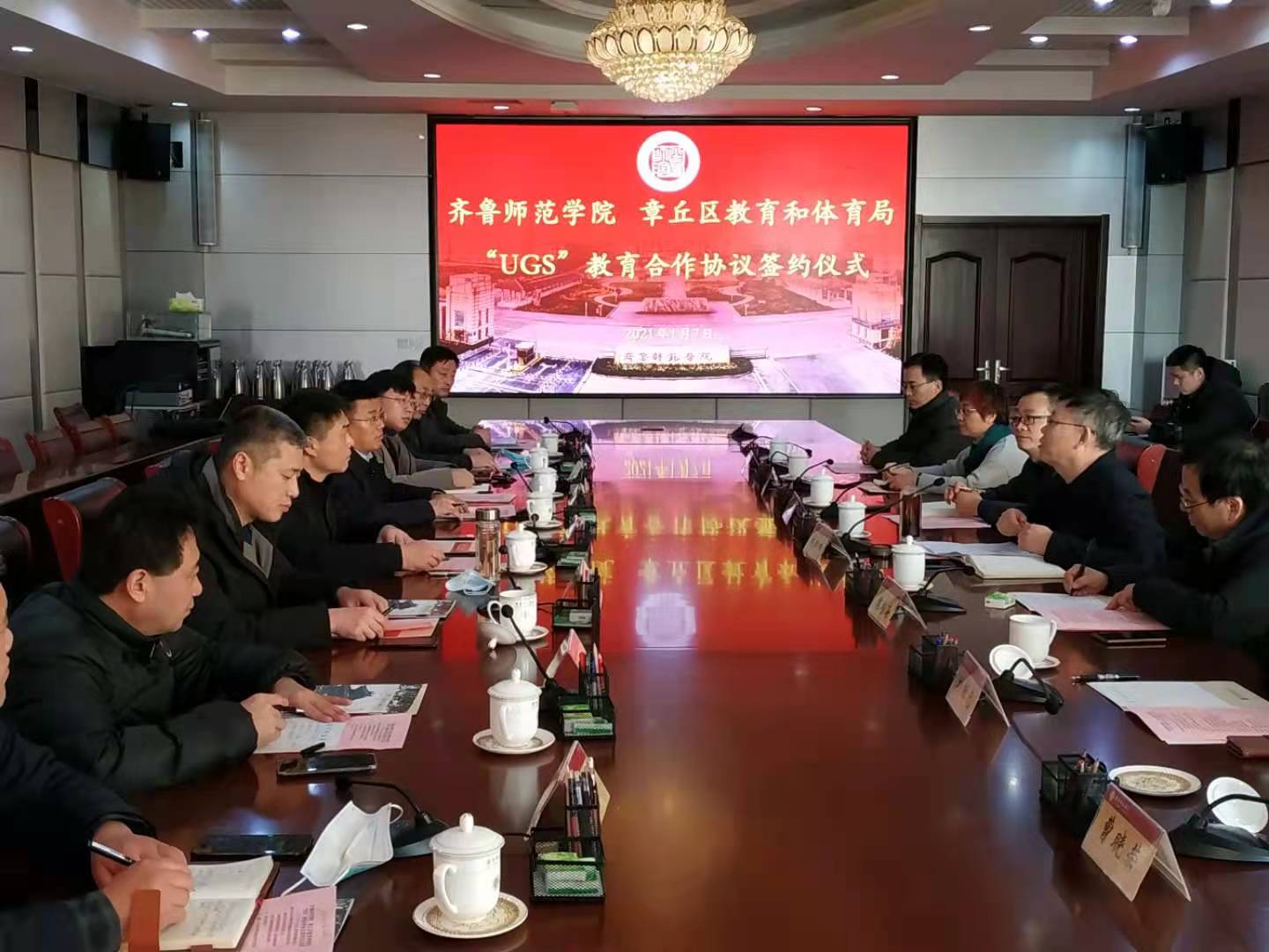 2021年1月7日下午,永利官网在图书馆四楼会议室举行yl7703永利官网-章丘区教育和体育局“UGS”教育合作协议签约仪式。校党委副书记、校长林松柏,章丘区教育和体育局局长刘国兴、副局长张宝义应邀出席会议,章丘市教育和体育局相关部门负责同志和部分中小学校长,永利官网相关部门的负责同志和部分学院院长参加了签约仪式,签约仪式由教务处处长孙洪兆主持。