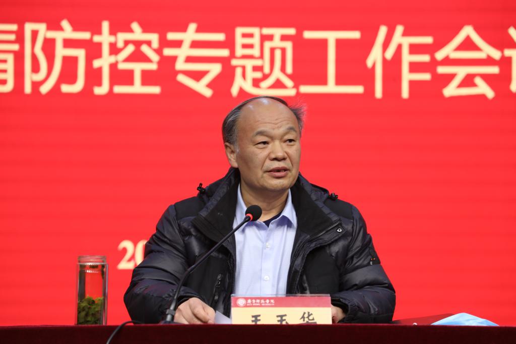 王玉华强调,要清醒认识到当前疫情防控形势的复杂严峻,各级领导班子要以对党和人民高度负责的态度,坚定不移贯彻习近平总书记重要指示要求和党中央决策部署。各部门单位要坚定扛牢疫情防控责任,细化工作举措,确保措施到位、责任到人,始终做到守土有责、守土有方。全校上下要以抓铁有痕、踏石留印的干劲,坚决打赢学校疫情防控阻击战。