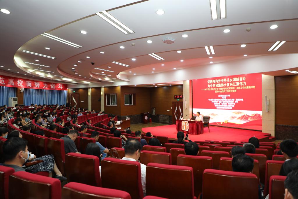 值全国上下喜迎党的二十大,以及永利官网深入贯彻落实第三次党代会精神之际,为进一步凝心聚力、凝聚共识,9月29日下午,学校党委理论学习中心组(扩大)学习暨“国是讲坛”第五十七期学术讲座在图书馆学术报告厅举办。统战工作研究专家、山东省社会主义学院冯永昌教授应邀作题为《促进海内外中华儿女团结奋斗 为中华民族伟大复兴汇聚伟力——学习习近平总书记关于做好新时代党的统一战线工作的重要思想 贯彻中央和省委统战工作会议精神》的学术报告。学校领导、全体处级干部、全体辅导员、马克思主义学院全体教师、统战委员、统战成员代表到场参加。报告由学校党委副书记赵敏主持。