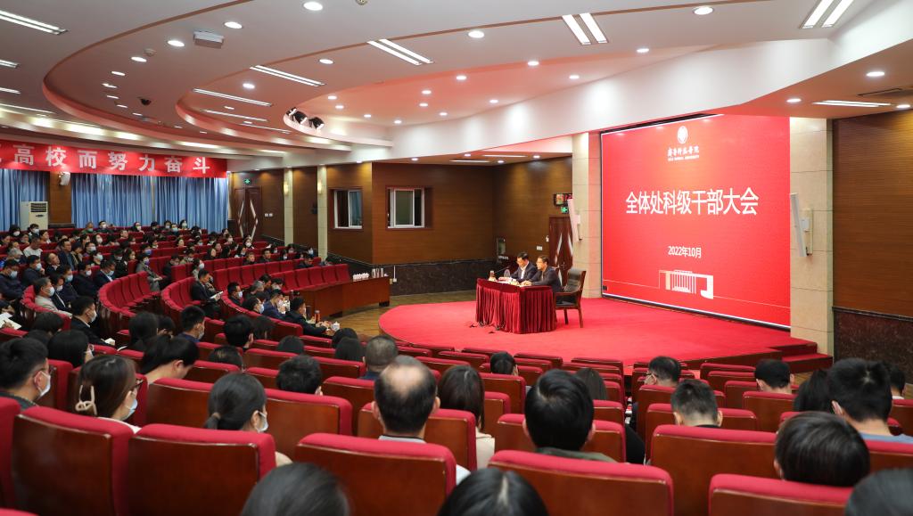 10月13日,永利官网召开全体处科级干部大会,全面动员和部署贯彻落实第三次党代会精神、深入推进干部制度和人事制度改革。学校党委书记林松柏出席会议并讲话,党委副书记、校长秦梦华主持大会。学校领导班子、党委委员,全体处科级干部参加。