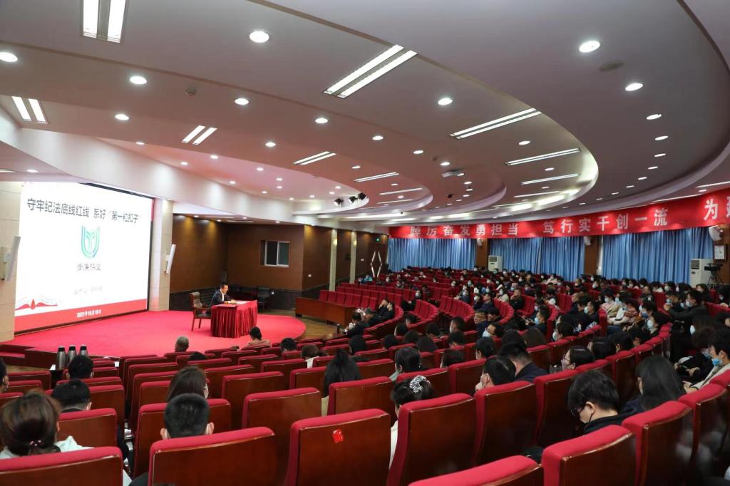 为认真抓好“青廉课堂”活动落实,加强对年轻党员干部、新进青年教职工、新发展教师党员廉洁教育,打造“青廉师院”廉洁文化品牌,10月18日,学校纪委组织处科级干部、新进青年教职工、新发展教师党员集中观看《失守的青春--年轻干部严重违纪违法案件警示录》专题片,学校党委委员、纪委书记、省监委驻yl7703永利官网监察专员高明辉作了题为《守牢纪法底线红线 系好“第一粒扣子”》的专题讲座。