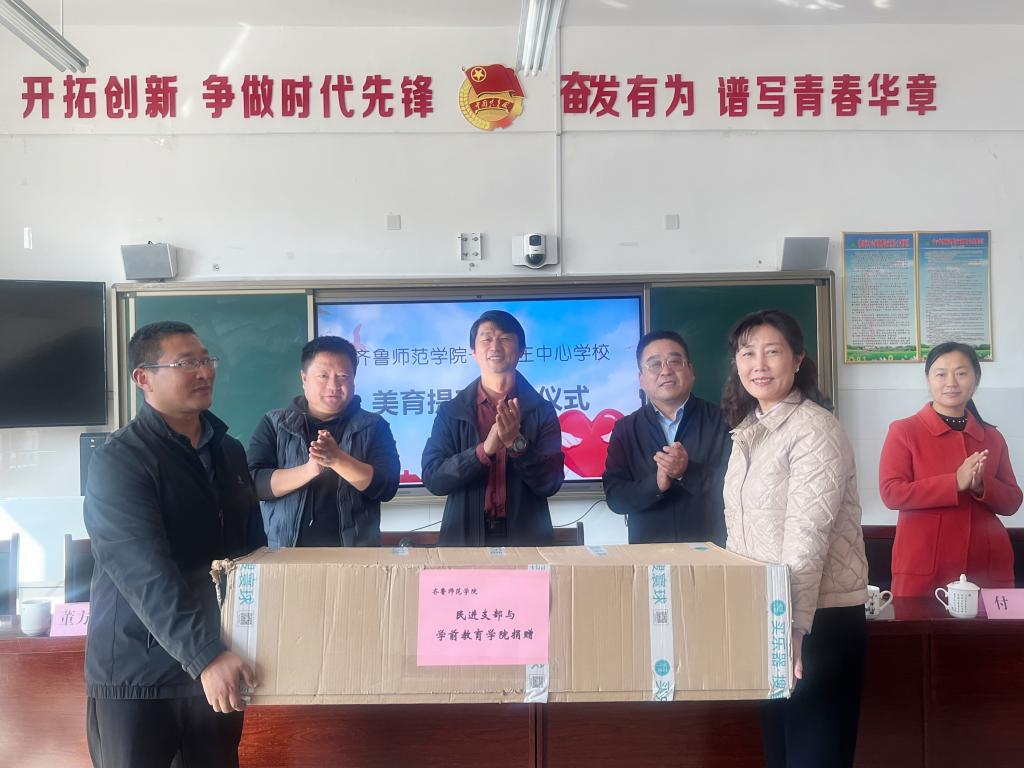 10月24日,民进yl7703永利官网支部成员在学校党委委员、统战部部长宋新刚的带领下,赴沂源徐家庄中心学校开展美育提升暨捐赠活动。
