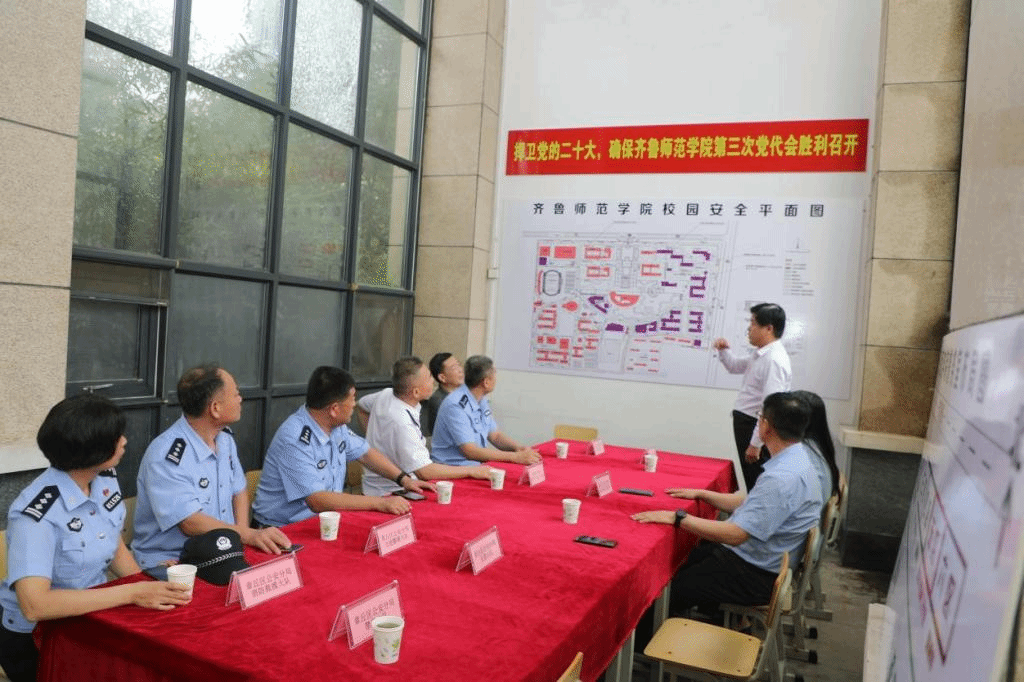 济南市公安局、章丘区公安分局、双山第二派出所警官深入警务室指导学校保卫部门开展公安保卫业务。