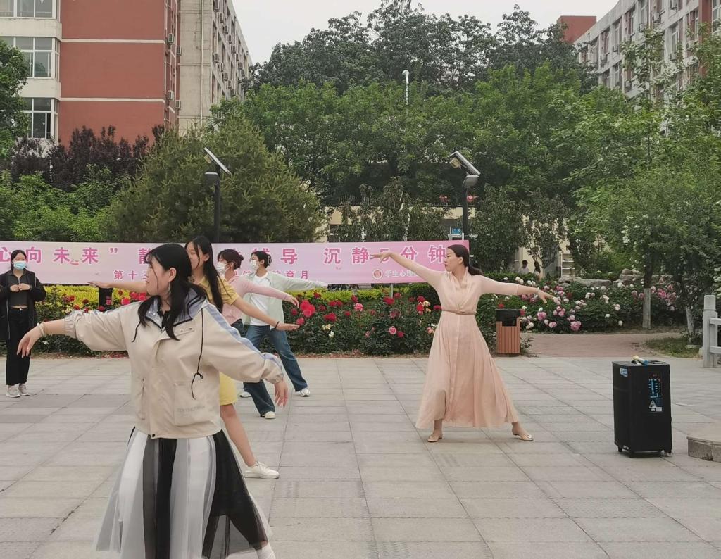 静心训练中,大家一起舞动双臂,通过焦点训练不断收放身心的能量。舞动后的“一分钟冥想”以“松—静—慢”的节律引领大家在冥想中悦纳自我、接受自我。