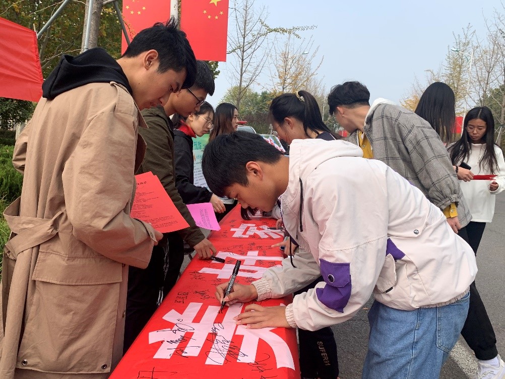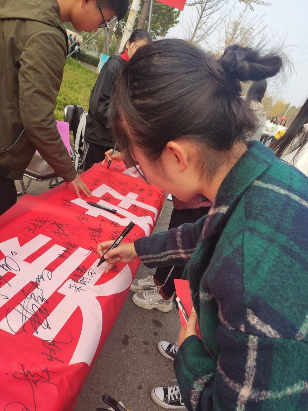 上午10时许,安全管理处、团委学生会开展了以“防范火灾风险,建设美好家园”为消防主题的“万人签名”活动,引来众多学生和老师的积极参与。期间,由安全管理处老师、校学生会学生组成的宣讲队结合校园发生火灾的特点,向路过师生讲解火灾防范及疏散要领,重点对宿舍常见的消防安全隐患提醒大家要及时查找并上报有关部门或时排除。
