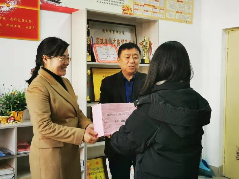 5日上午,在永利官网章丘校区实验楼B216会议室内,物理与电子工程学院2016级学生张真真(化名)从庞守荣书记和张洁院长手中接过捐款箱。张真真,系物理与电子工程学院2016级学生,2017年查出重病,家境贫寒,为治病欠下巨额债务。她虽身患重疾,却始终勇于面对,积极向上,表示“要把最好的时光留在学校”,坚持与疾病斗争到底,决心完成学业。