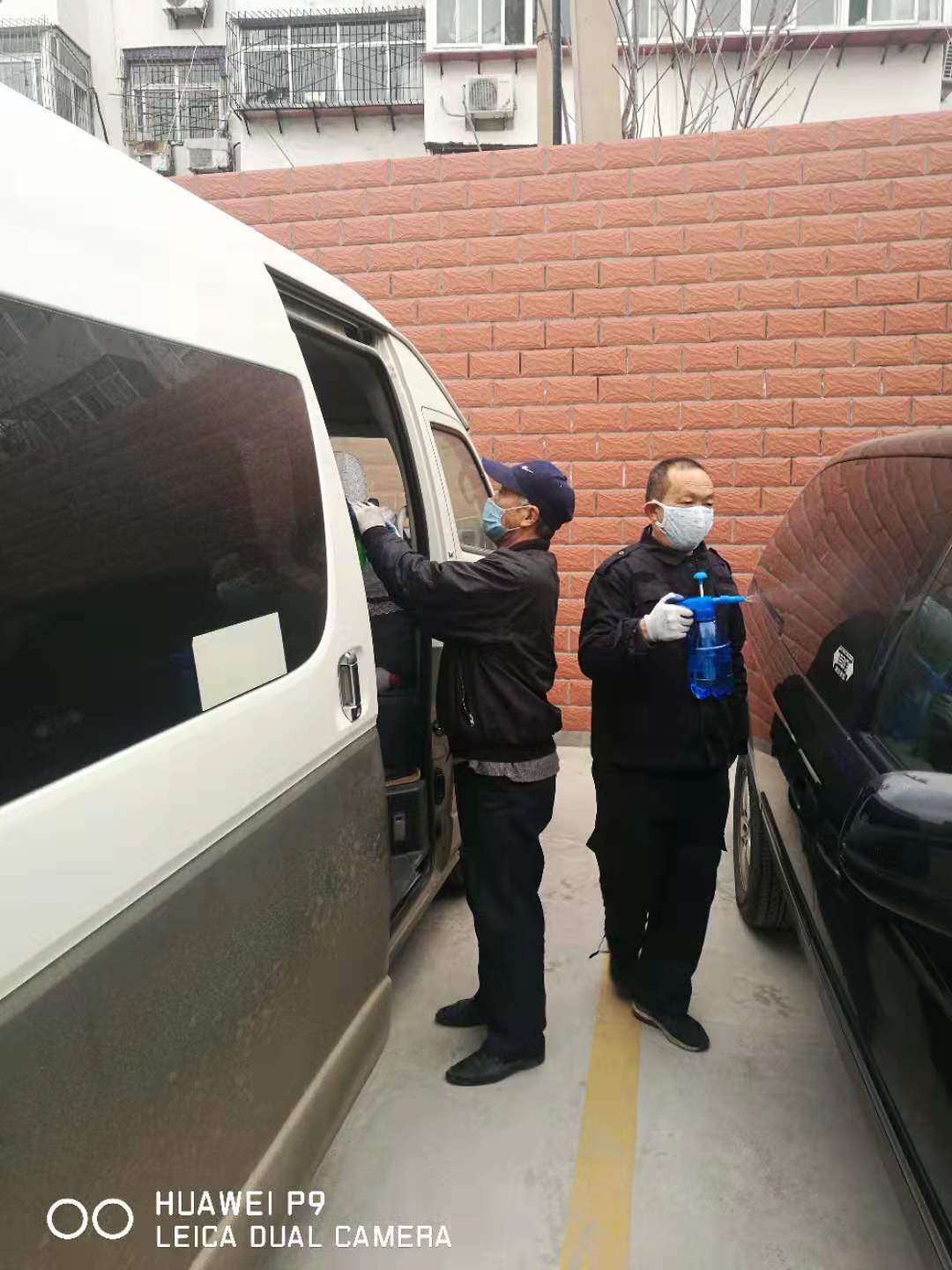 培训后,相关人员按照要求佩戴口罩、手套对校车和公务车辆内部进行了酒精擦拭消毒,并对车外部位用84消毒液进行了喷洒消毒。
