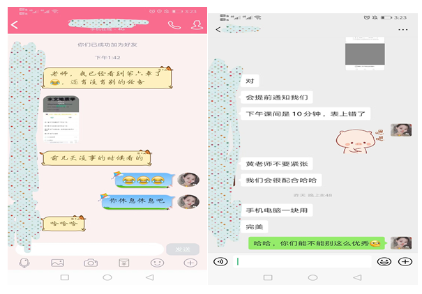 学生们以极大的热情参与到网上学习中,每天根据老师的安排进行学习。直播课上积极回答老师的提问,参加问题抢答,头脑风暴,做课堂笔记,课后根据共享课进行更深一步的学习,按时完成老师所安排的作业。疫情阻止了学生们返校上课,但是阻止不了他们成长的步伐,只有不断的学习和成长,才能增强服务社会的实践能力。