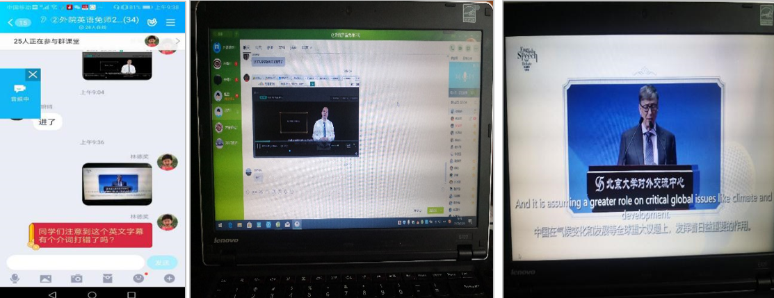 期间,林老师在慕课堂上发起了讨论,鼓励大家各抒己见,踊跃发言,随后他认真聆听并进行一一反馈。在与同学们共同观看网络课程的视频时,林老师根据字幕中的一处错误与同学们展开讨论,与同学们积极互动,充分调动了大家学习的积极性。大家逐渐适应这种模式,课堂氛围活跃。