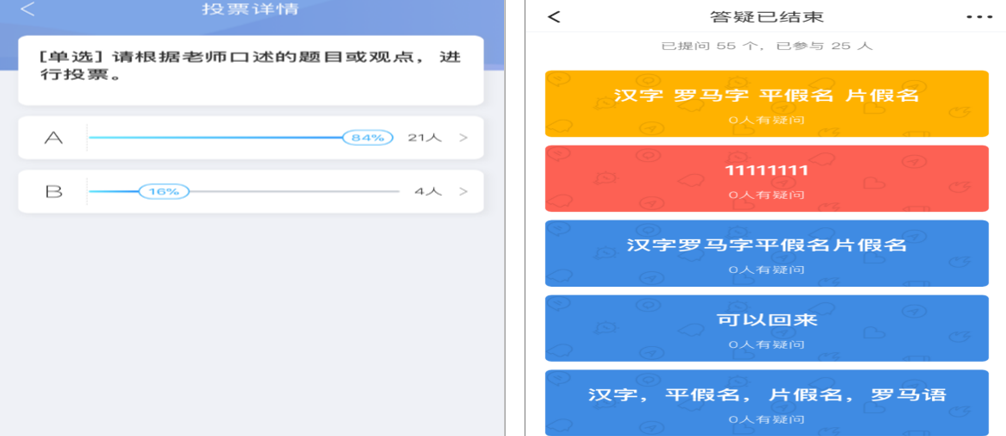 在课堂中,栾佳老师采用智慧树平台见面课及腾讯会议等方式授课,并在授课过程中使用投票和答疑等多种方式与学生互动,确保学生在线的学习质量,使得所有学生积极参与课堂活动,对第二语言的学习提供了良好的学习氛围。
