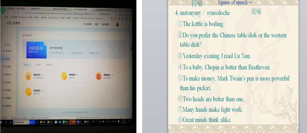 那么,看到外国语学院的老师们在这个特殊时期仍然如此认真地为同学们讲课,有没有激发你认真学习的动力呢?在接下来的时间里,老师们定能充分发挥网络课程的优势,为教学营造出良好的学习氛围,相信同学们也定能积极配合老师,不断学习,充实进步!