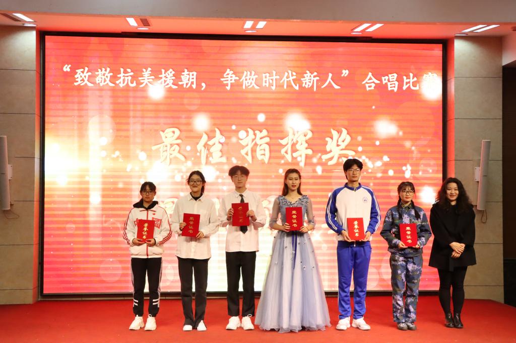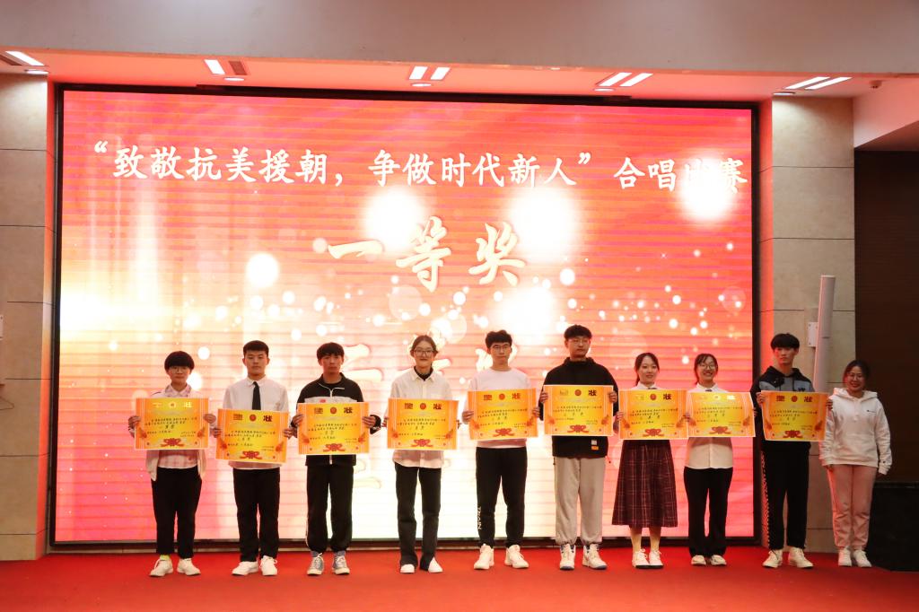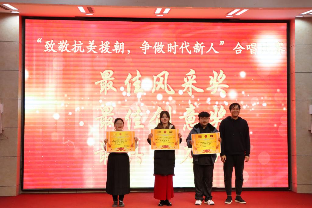 本次合唱比赛最终评选出一等奖、二等奖、三等奖、优秀奖,最具实力奖、最佳风采奖、最佳创意奖、最具潜力奖8项团体奖项,以及最佳领唱奖、最佳指挥奖2项个人奖项。活动现场,还对“写给抗美援朝英雄的一封信”征文比赛的获奖者进行表彰颁奖。
