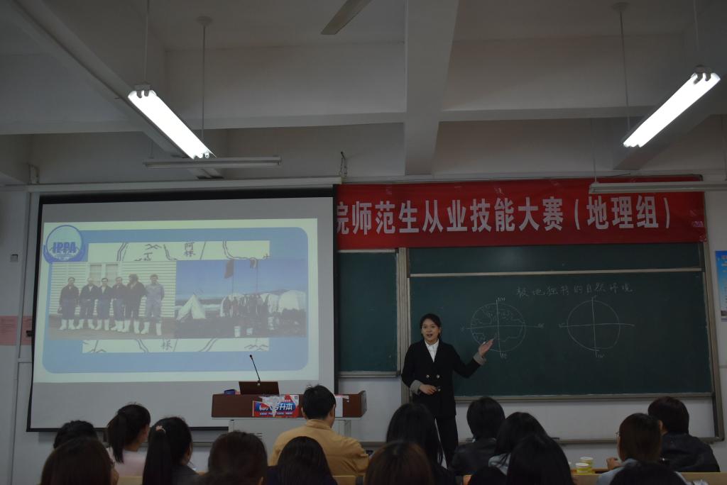 为展现历史与社会发展学院师范生的教学风采,进一步提升师范生基本教学技能,按照山东省教育厅《关于举办第九届山东省师范类高校学生从业技能大赛的通知》(鲁教学函[2021]7号)及永利官网《第九届师范类专业学生从业技能大赛实施方案》的要求,4月17日上午,在二号教学楼A213、A217、A207、A202教室分别开展高中历史、初中历史、高中地理、初中地理的校级比赛。