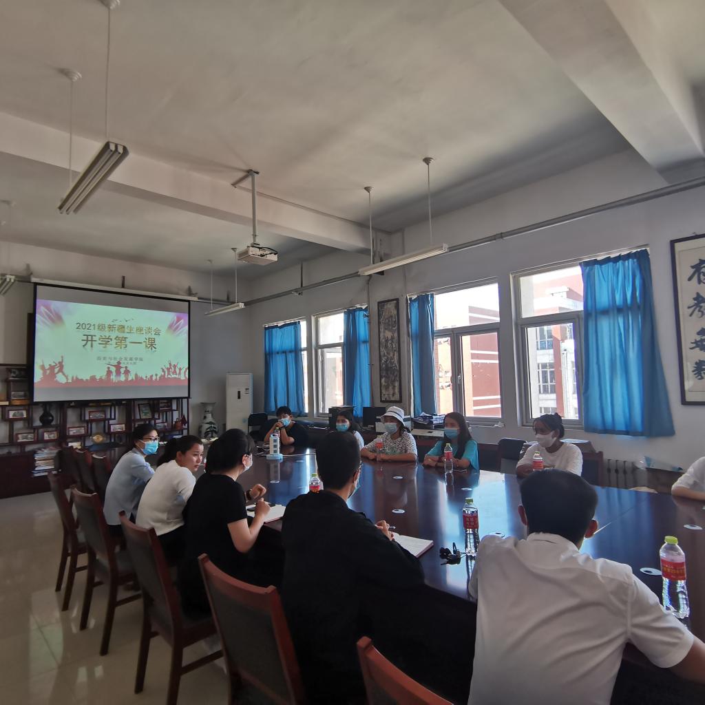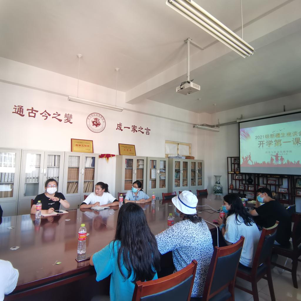 为明确新生的在校行为规范,保障学生的权益,加快新生融入大学的学习、生活氛围,历史与社会发展学院于9月8日下午三点举行2021级新疆生座谈会暨开学第一课会议。团总支书记宋高娃,全体辅导员及21级新疆生参加会议。