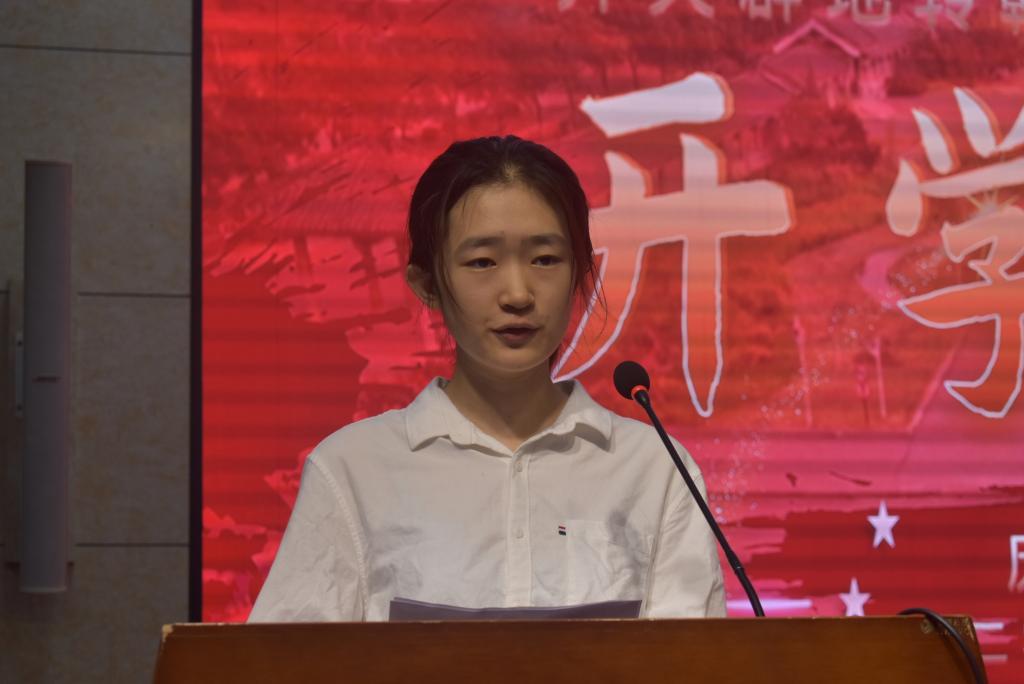课后,举行了新生入学宣誓,由赵凯雯同学领誓。“博学明道,崇德象贤……”青春的旋律在这里飘扬!