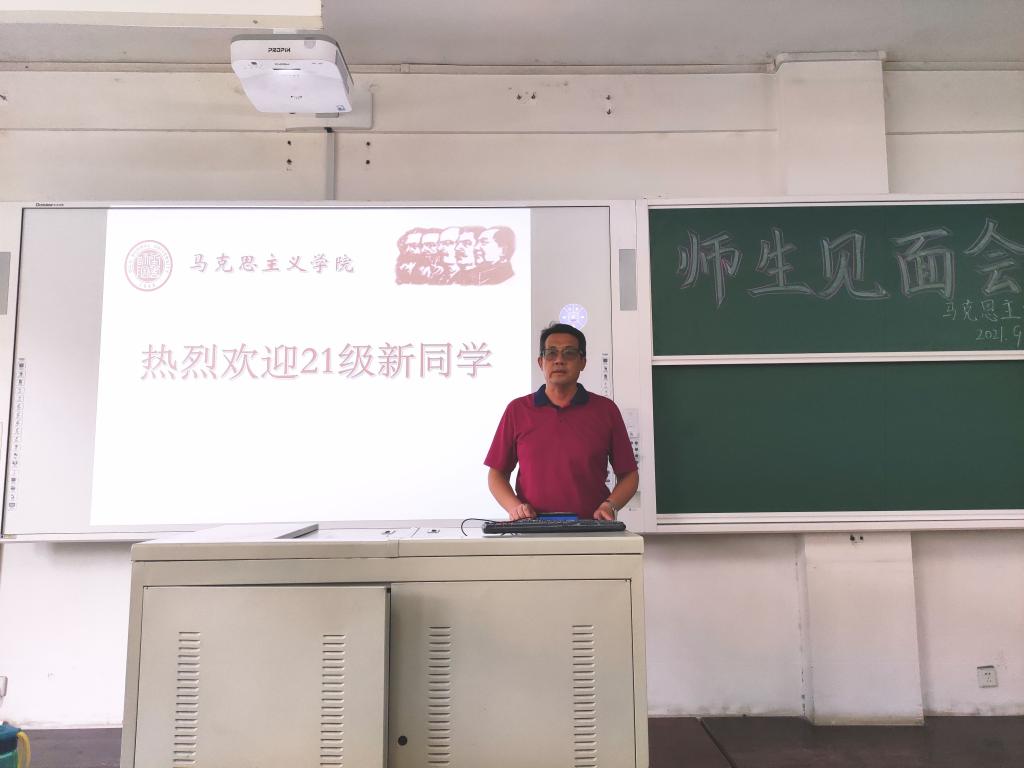 下午马克思主义学院于1号教学楼A207教室举行了师生见面会,并通过腾讯会议邀请2021级新生家长参与了本次会议。本次见面会由王雅文老师主持。会议伊始,王雅文老师对2021级新生的到来表示欢迎。她首先提到,2021级新生要尽快找到大学的目标并努力向自己心中的目标靠近。随后,她介绍了出席本次会议的教师。参与本次会议的教师有马克思主义学院院长刘振光教授、马克思主义学院党总支副书记赵立峰副教授、办公室主任刘金玲副教授、团总支副书记王雅文老师、办公室教务秘书孔倩倩老师、2021级新生班主任张纪昌老师、团总支陈赟老师、娄衍群老师、教务处彭珍珍老师。