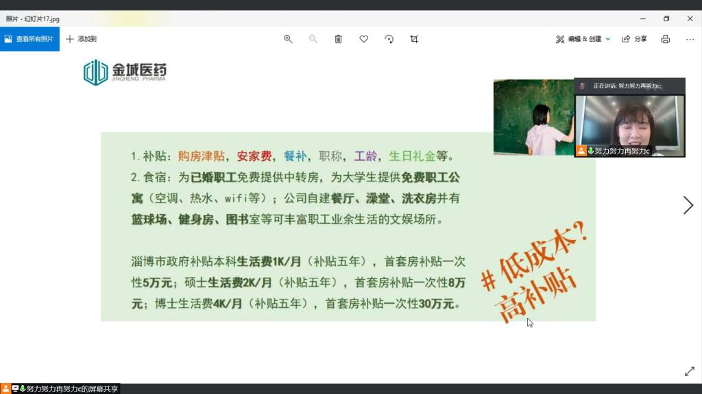 4月24日9:00,化学与化工学院邀请金城医药集团招聘HR吕琛做专场招聘宣讲,毕业班辅导员杨睿、2022届毕业生参加了此次会议。